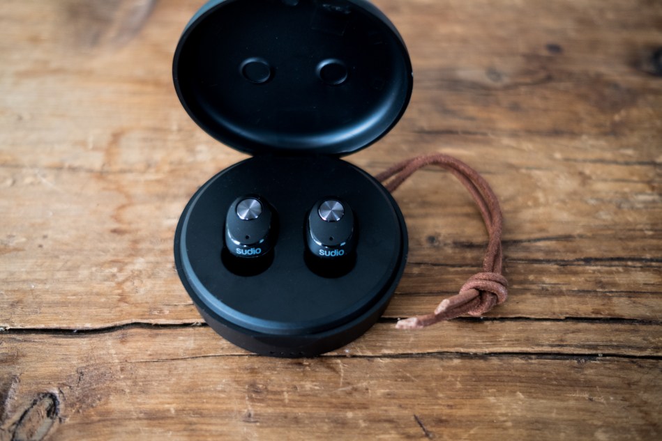 Sudio Nivåissa tulee melko iso kotelo mukana ja se hieman pilaa tuotteen kompaktia ajatusmaailmaa. Kotelo on hyvä aina olla mukana, koska niillä myös ladataan kuulokkeet. Se esittää tärkeätä roolia, koska kuulokkeiden akunkesto on ainoastaan 3,5 tuntia. Kotelo mahtuu juuri farkkujen taskuun, mutta siellä se pullottaa kuin nuuskapurkki.