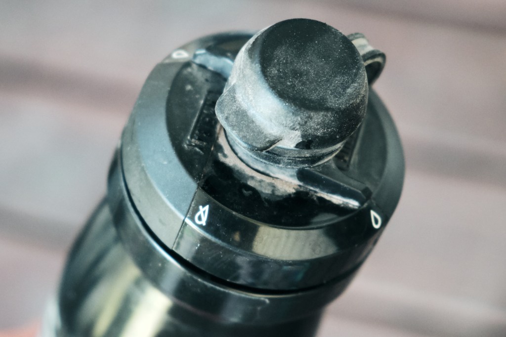 Tällä kertaa Oksasen LM-suurennuslasin alla CamelBak Podium Dirt 0,62L juomapullo. Kyseessä on nimenomaan off-road pyöräilyyn suunniteltu pullo. Erityisen CamelBak Podium Dirtistä tekee sen korkki, joka suojaa suuosaa kuralta ja lialta.