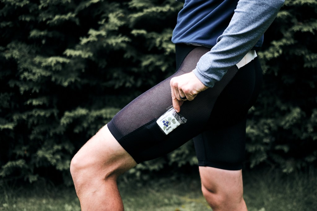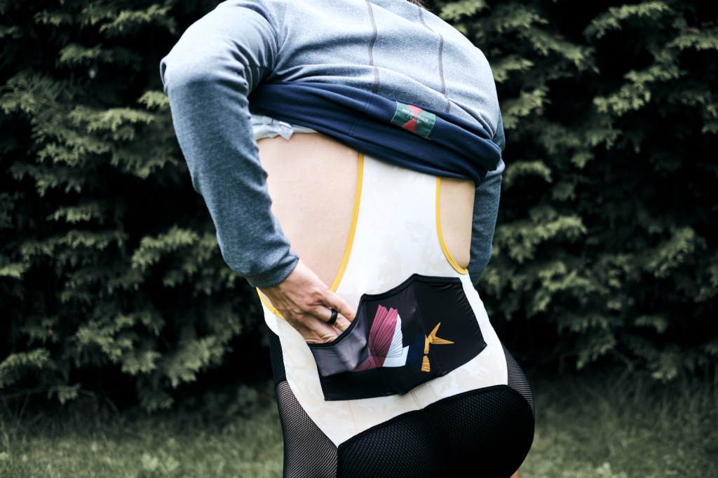 TASKUT: Helene alusbibseistä ei taskuja puutu. Reidestä löytyy geeleille oma tasku ja selässä vielä kolme taskua lisää. Lukuisat taskut ovat todella hyvät pidemmille matkoille, kun evästä on kannettava paljon mukana! Gravel- ja retkipyöräilyssä reitit saattavat kulkea pidemmän aikaa poissa kauppojen ym. läheisyydestä ja siksi on hyvä olla mahdollisimman paljon taskuja tavaroiden ja eväiden kantamiselle.
