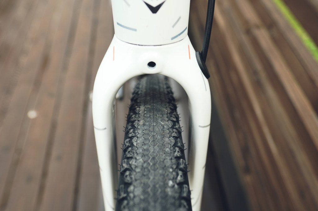 + Hyvin on tilaa isoille renkaille. Vakiona 27,5″ / 650b halkaisija ja leveyttä vakiona tulleissa Vittorian renkaissa 47mm. Vaihdoin syksyllä 50mm leveät ja hyvin jää tilaa vieläkin leveämmille renkaille.