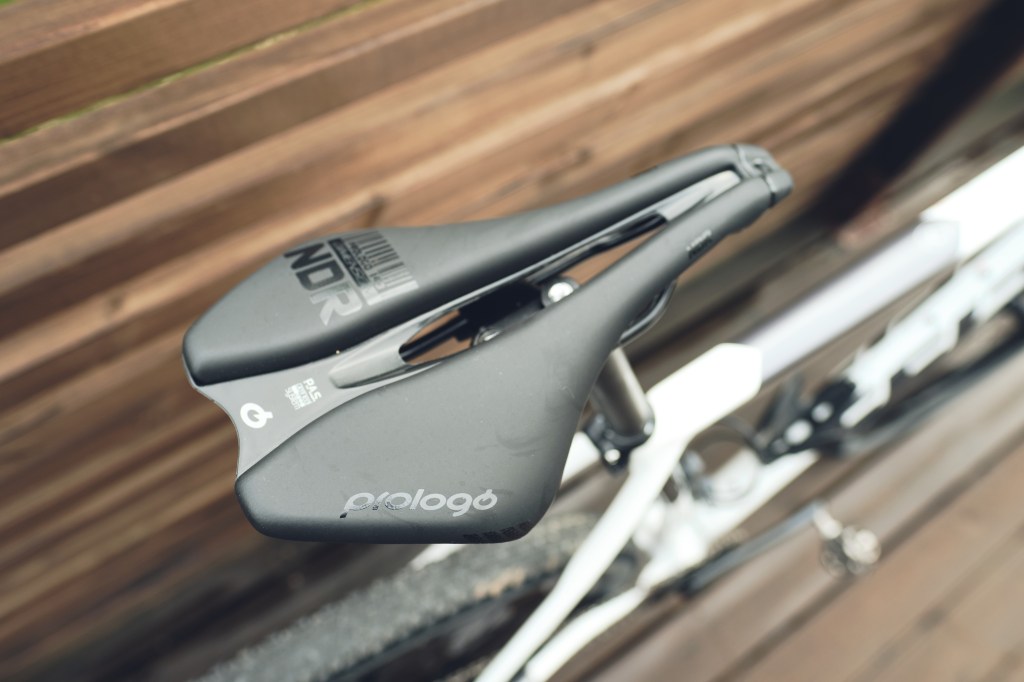 – Prologon Dimension ”tylppäsatula” ei istunut Oksasen beban alle. Tämä on tietty sellainen osa-alue, että haastava miellyttää kaikkia, koska satula on hyvin henkilökohtainen juttu. Mutta ehkä joku perus Fabric Scoop tai WTB SL8 olisi istunut useamman takapuolen alle. Plussaa kuitenkin siitä, että ei ole laitettu halvinta ja painavinta satulaa vakiona. Prologo on kevyt ja hintaluokka n. 80 €.