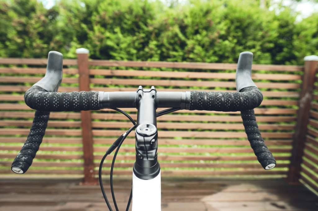 + Ohjaamo. Devox (Feltin oma merkki) ohjaustanko on mukavan leveä (46cm XL koon rungossa) ja flarea (16 astetta) on juuri sopivasti. Tankonauha on myös todella jees. Siinä on heijastavia pisteitä ja loistava pito!