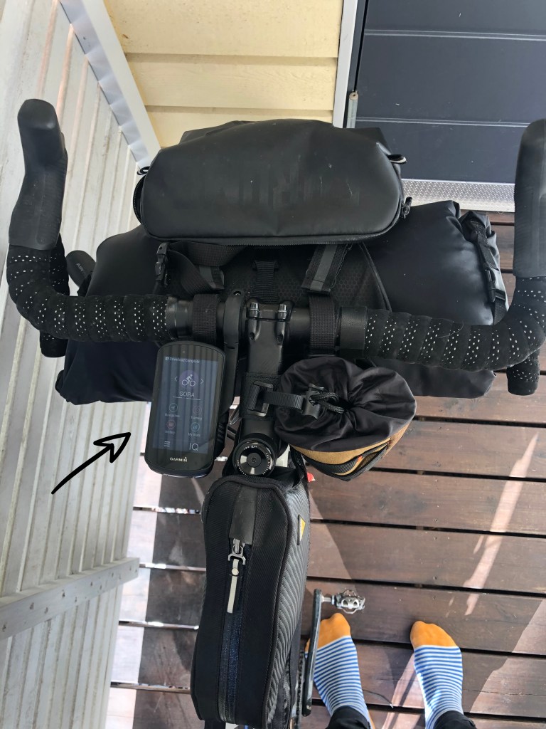 Pakkausohje: Kiinnityksille on rajoitetusti tilaa ohjaustangossa. Navigointilaite kannattaa kiinnittää niin, että se ei häiritse laukkujen käyttöä. Itse käytän paljon kameralaukkua ja sen takia Garmin on sijoitettuna stemmin viereen tai stemmin päälle.