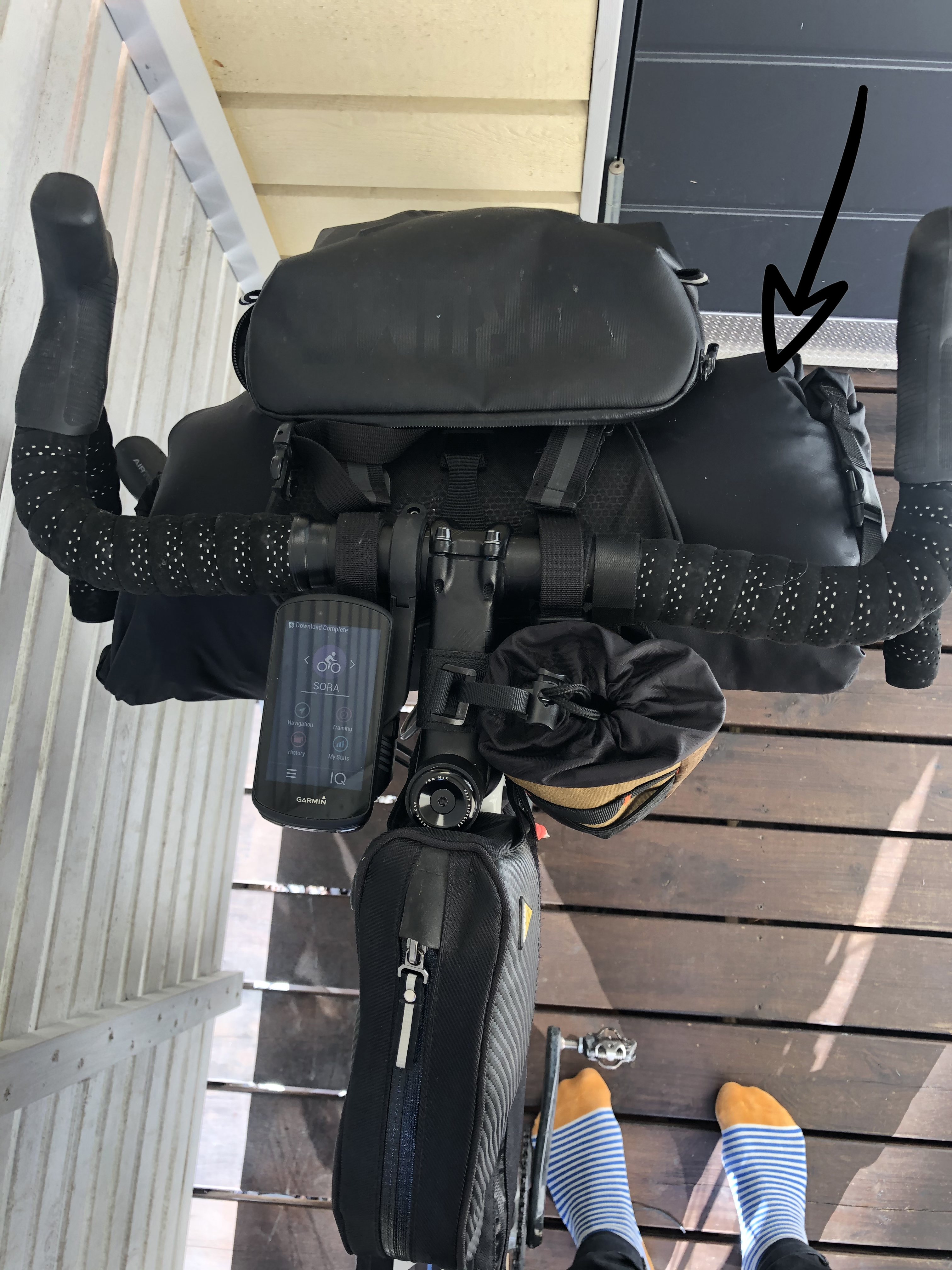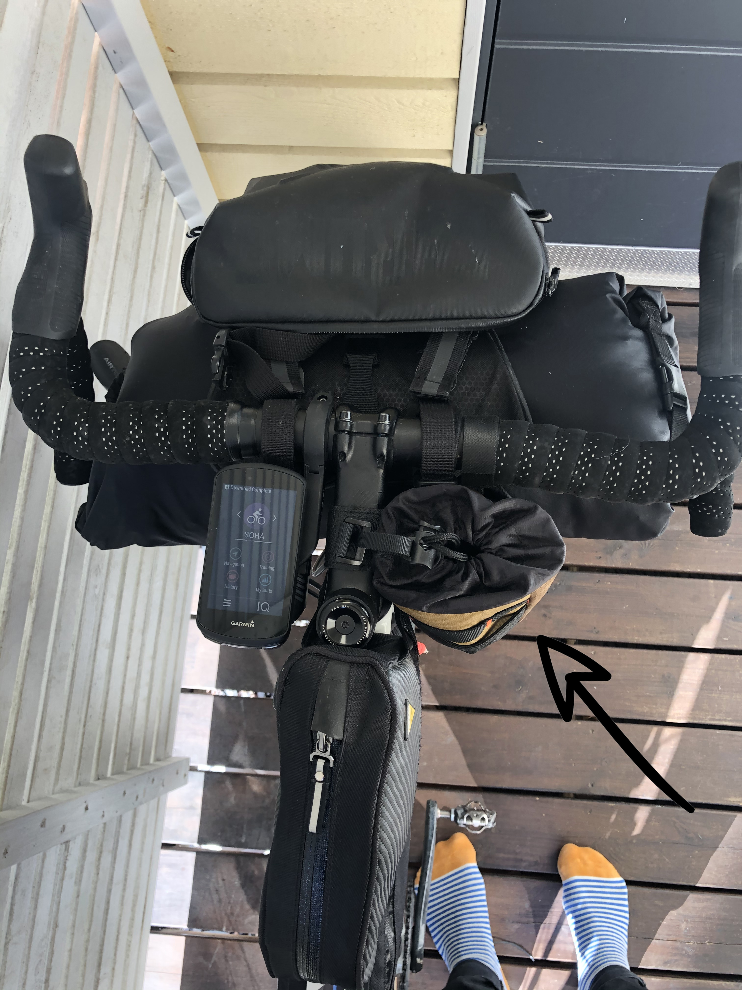 Pakkausohje: Pyri jakamaan paino tasaisesti jotta pyörän ohjaus ei kärsi. Itse sijoita keittimen/kattilan keskelle laukkua. Makuupussi ja -alusta tasaisesti ja ”varovaisesti” kattilan ympärille. Makuupussin ja -alustan omat pakkauspussit jätän kotiin.