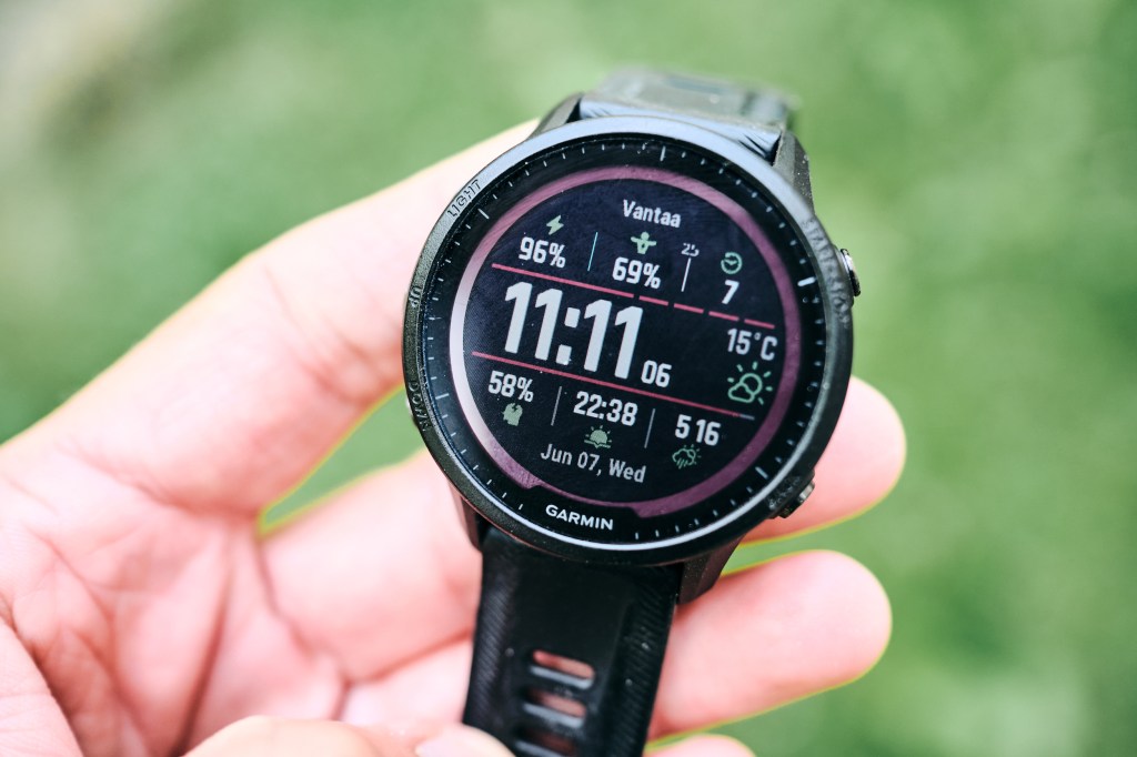 + Paljon erilaisia kellotauluja. Jokapäiväisessä käytössä tykkään, että näytöllä on paljon dataa (tällä hetkellä näen kellotaulusta ajan, paljon akkua jäljellä, body battery, palautumisajan, sään, stressitason, auringonlaskun ja -nousun, päivämäärän). Jos menen vaikka juhliin, niin saatan vaihtaa klassisemman kellotaulun jossa viisarit.