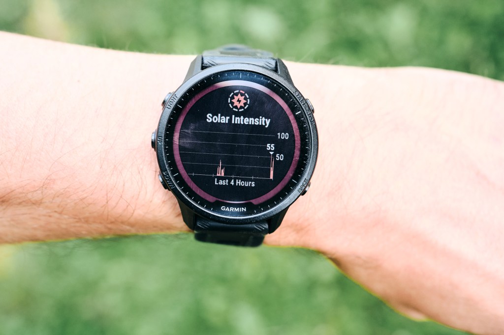 + AKUNKESTO! Kompaktiin kokoon nähden loistava akunkesto ja nyt vielä aurinkopaneelit tuomassa lisää virtaa. Ei tarvitse pitkissä ultrajuoksuissa miettiä kestääkö akku maaliin asti. ”Vain GPS -tila ilman musiikkia: enintään 42 tuntia (6 tuntia enemmän kuin Forerunner 945) / 49 tuntia aurinkolatauksella (oletuksena käyttö 50 000 luksin olosuhteissa)” Täällä tarkemmin akunkestosta eri asetuksilla: https://support.garmin.com/fi-FI/?faq=wyxzT5ZO6p75H2jjAFw796&productID=777655&tab=topics