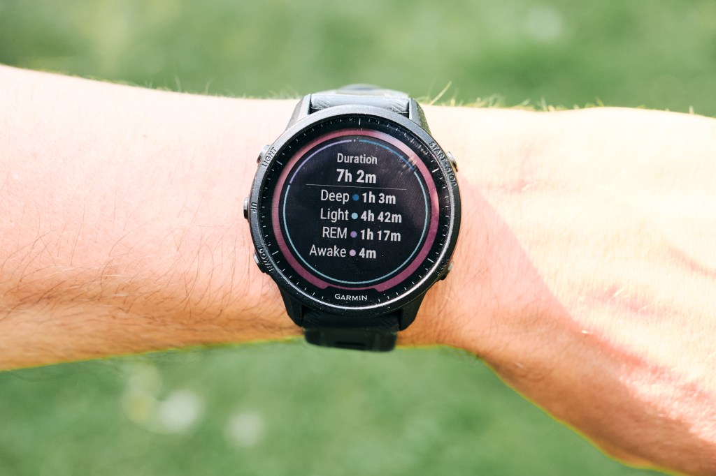 + Unen statistiikka. Pidän aina öisin kelloa ranteessa, jotta voin tarkkaan seurata unen laatua ja palautumista. Eli herätessä kellolle tulee heti oma näyttö josta pääset tutkimaan yön statistiikkaa. Näet unen määrän, palautumisen tason, sykevaihtelut jne. Itse seuraan näitä jatkuvasti ja saatan jopa jättää päivän treenin väliin jos Garmin niin kehottaa tai sitten teen isomman treenin jos palautuminen sujunut hyvin. Kello kädessä nukkuminen voi kuulostaa oudolta, mutta siihen tottuu muutaman yön jälkeen.