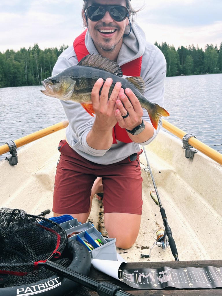 Tähän alkuun vielä tarinaa uudesta innostuksestani, kalastuksesta. Lapsena tuli jonkun verran mökillä kalasteltua, mutta jotenkin laji ei sytyttänyt kuin vasta nyt aikuisiällä. Noin kaksi vuotta sitten hankin pojalleni hänen ensimmäisen virvelin. Silloin minulla ei ollut omia kalastusvälineitä vaan lähdettiin liikkeelle hänen kalastelulla. Siinä sitten sivussa seurailin ja hieman innostuin itsekin ja päätin hankkia myös itselleni virvelin. Sen jälkeen meidän perheen kalastus harrastus on lähtenyt aikalailla lapasesta. Nykyään on kaikilla omat virvelit ja vieheitä monta laatikollista. Mökkeillessä olemme melkein enemmän järvellä kuin maissa. On kyllä loistava koko perheen harrastus!