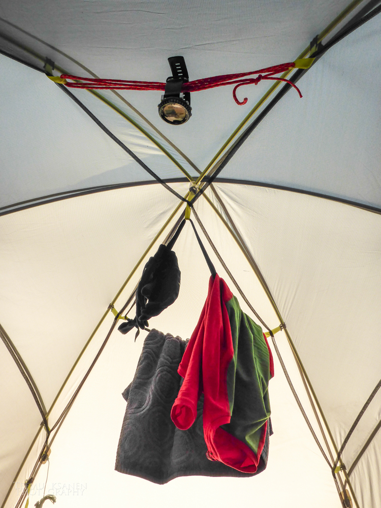 Some stuff drying in our tent. I also had my first good wash in the very cold river.